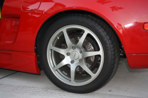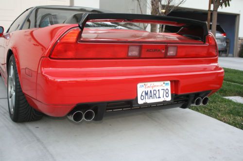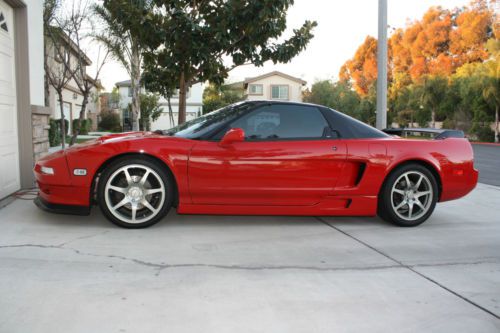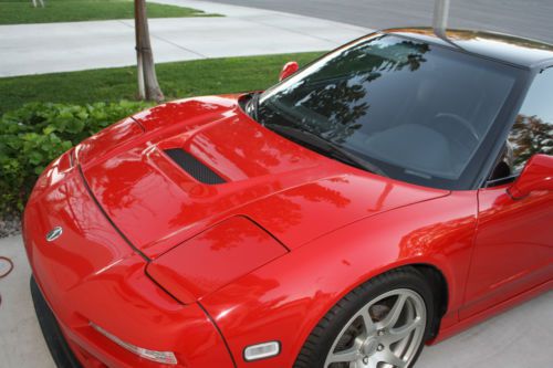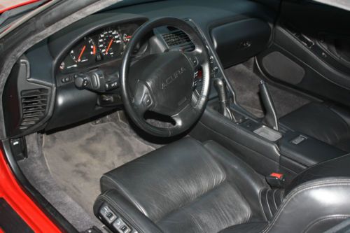 1991 Acura NSX with 22800 original miles in imola red with black leather interior. This is a rare, collectible car in excellent condition with everything like new including all hoses, belts, tires, brakes, etc. Even the paint is shiny with the original clear glossy coat with no fades. This is a 5-speed built to resemble the famed NSX-R from Japan including carbon fiber hood and tail on top of 17" Pro-Drive wheels all around backed by a smooth ARC exhaust. In addition, this has a new Comptech supercharger unit that cost 10K alone producing over 300hp. This vehicle is clean inside and out with everything working and no check engine lights. Leather interior is conditioned with no major cracks, fades, or rips. You can bring any mechanic to inspect and you will find nothing wrong except personal taste or touch. This gem has a clean clear title in hand with no accidents or body work. There is not a single door ding, rust, or defect on this car. This is one of the best ones around in showroom condition. It is adult owned in a non-smoking environment that has never been raced or tracked. Maintenance records and receipts are available for all work. Please email me with any questions you may have to prevent any misunderstandings or confusion. You may schedule an appointment to come view the car but I am not interested in any trades or low ball offers. Do your research/homework and you will find that this is the one of the best ones available.