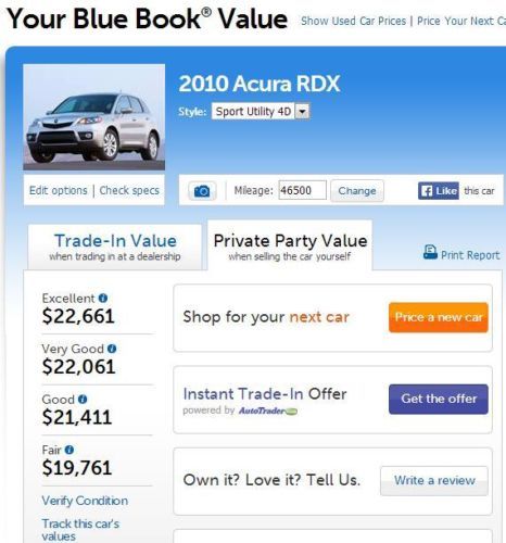 Let me start by saying that this SUV is absolutely gorgeous in every aspect and drives even better. First of all, you will not find another White Diamond Pearl paint job with an all Black Interior. It took me a long time to find this vehicle with these options. This vehicle has spent almost all of its life in Gainesville, Florida and the last 10,000 miles in St. Augustine, Florida. NO RUST! I am impressed, I average 25 miles per gallon running around. I have achieved 31 MPG highway and only use Shell Premium 93 Octane Fuel. The only reason I am selling this vehicle is because my needs have changed, I am now looking to buy a Crewcab GMC Sierra truck. Technical Features 240hp 2.3 Liter DOHC 16-Valve i-VTEC Turbo 4 Cylinder Engine 5 Speed Automatic Transmission w/ Sequential SportShift Paddle Shifters 4 Wheel Disc Brakes MacPhearson Strut Front Suspension Rear Multi-Link Suspension Variable Assist Rack and Pinion Power Steering Drive By Wire Throttle System Immobilizer Theft Deterrent System Safety Features Driver and Passenger Dual Stage Airbags Side Airbags, Curtain Airbags Vehicle Stability Assist Anitlock Brakes Electronic Brake Distribution Brake Assist 3 Point Seatbelts Active front head restraints Side Impact Door Beams Tire Pressure Monitoring System ACE Body Structure Daytime Running Lights LATCH System for Child Seats Interior Features Sport Seats with Perforated Leather Trim XM Satellite Radio MP3/Auxiliary Input Jack USB Audio Interface Driver Recognition Memory System Driver 10 Way Power Seat Passenger 4 Way Power Seat HEATED FRONT SEATS! Homelink System Bluetooth Hands Free Steering Wheel Mounted Controls Power windows and locks Acura Personalized Settings Auto Dimming Rearview Mirror Exterior Features Power Moonroof with Tilt Feature 18"x 7.5" Alloy Wheels Michelin Tires Xenon HID Headlights Fog Lights Heated Power Door Mirrors with turn indicators Remote Entry with Security System Tech Package Acura Navigation with Voice Recognition and Rearview Camera Realtime Traffic and Weather Acura/ELS Surround Sound System with 10 Speakers BUILT IN SUBWOOFER AM/FM, 6 Disc, DVD, CD DTS Dolby Pro Logic II XM Satellite Radio GPS Linked Dual Zone Auto Climate Control with Air Filtration System MSRP $36,430 |
