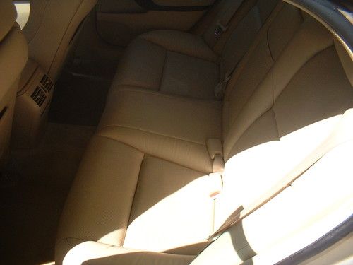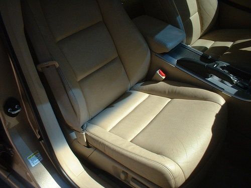 The interior is very clean. The car has not been smoked in. The leather is tan with black dash and door accents. The seats are heated. There are no tears or rips in the seats or carpet. There are a couple of marks and places on the floor matts. Nothing major. The headliner is flawless. The trunk is very clean with the all the nets. The AC works great and the stereo and CD player work as they should. The stereo is set up for XM radio. The navigation is the best I have used. The car has a back up camera and the beeping sensor that beeps louder and quicker as you approach an object. The mirrors are heated and both are electric/power and can turn down while in reverse if selected. Cruise control. A full set of maintenance minders and system options that will give verbal comments and can be controlled via a touch screen.