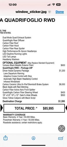 Trim: QUADRIFOGLIO, 510HP, $8K BRAKES, Ferrari derived engine!