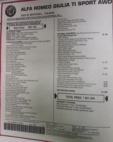 2019 alfa romeo giulia ti sedan 4d(US $23,995.00)