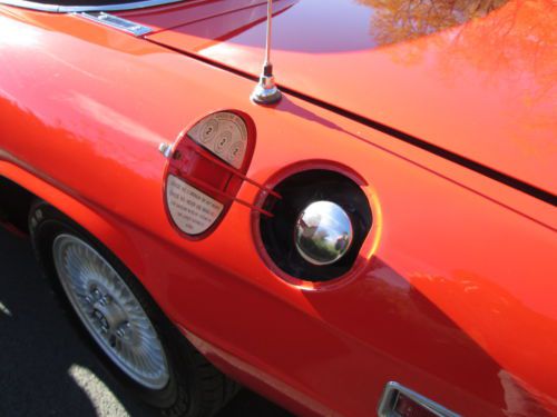 ONE OWNER with 55,840 ACTUAL MILES, Sold New locally where it has remained for 39 years. Complete SET of BOOKS original to the vehicle. Service Records Included. Tire Changing Tools and Hand Tool Kit Included. Vehicle starts, runs and drives as a 55K mile car should. NO transmission shifting or clutch problems. Engine Compartment and finishes are totally original and have not been "cleaned for sale". Trunk and finishes are all original to include mat. Interior is totally original except the front seat cushions that were replaced with the proper material / pattern due to stitching separation. Door panels, Dash pad, Carpeting, Rear seat area, Rubber floor covering are original and free of cracking or evidence of wear. Original AM-FM Radio. Everything operates as it should. Original Cloth top was replaced with Factory Style Cloth Top due to light rear window fogging. 5 Factory Alloy wheels with NEW Premium Tires on the ground and original Michelin on the spare. Bright metal, Glass and Body Seals are all in good to Excellent Condition. I recently had the vehicle refinished ($4650 refinish only with no metal work) in the proper original color. At sometime in the past, the car was repainted in the wrong shade of red that did not match the virgin jams, engine compartment and trunk. Questions? Call the owner at 908 872 7356 |