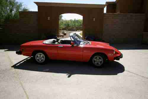This is a beautiful 1982 Alfa Romeo Spider Veloce. A very dependable vehicle that has recently been tuned and diagnosed. I have all records dating back to 1990. The engine is very solid with 115,000 total miles and only 18K since the car was restored and the engine rebuild in 2003. Paint is in superb condition and shines excellent. The interior is in pristine shape with super clean carpeting and the original leather seats that remain in wonderful shape. The car shows very well and has a new set of Pirelli tires and an Ansa Exhaust that sounds great. Car runs flawlessly.