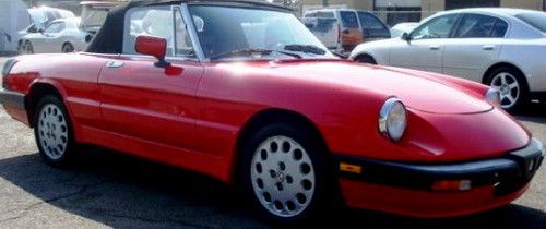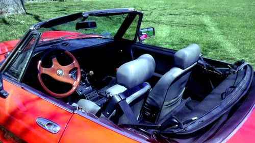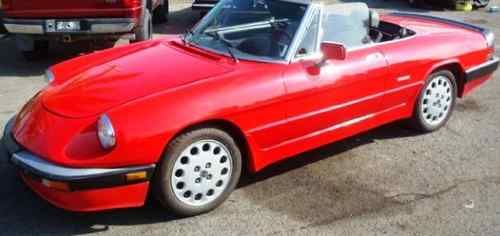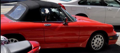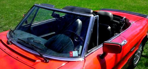 Red 1986 Alfa Romeo Spider Convertible Roadster, 2 door, manual 5 speed. I purchased in San Diego CA and shipped it to MA on an enclosed carrier. NOT A PROJECT CAR. It has never been snowed on, or driven in salt on roads. Rust free. Always starts right up. Runs and drives well. It has spent winters inside and covered. Can handle the highway. Black and gray interior, power windows, approximately 57,000 original miles. Has AM/FM/CD player, 4 new pioneer speakers, and new black interior carpeting last season. I have only put about 3000 miles on it since I purchased it in CA several years ago. The paint is bright red, there are a few light scratches that could be buffed out by an auto body shop, and one small patch of darker red about 2inx1in on the passenger door. The dashboard has the customary cover. The original cover underneath has the characteristic cracking in the vinyl but is not noticeable with the cover. The Alfa has never been in an accident and has a clear windshield. The pictures make the paint look faded but it is not, its just the sun glare on the phone lens. This car does not have a/c, or a spare tire/jack. The car is currently on the road with a current inspection, plates, and registration. There is an odometer disclosure because the speedometer and odometer are not currently working. I'm selling the car because I don't; get to use it as much as I'd like and I'm looking to downsize my personal expenses, otherwise I'd keep it, its a head turner and fun to drive especially on country roads.