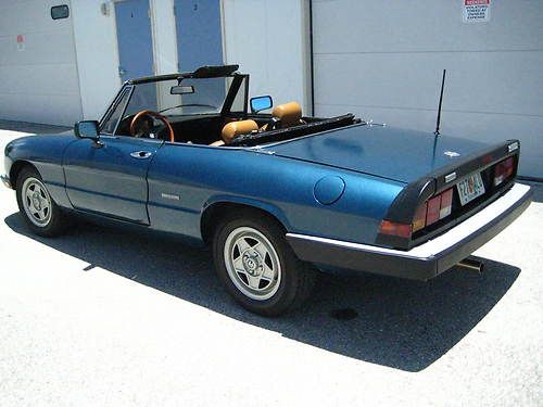 I recently purchased a 1985 Spider which I want to turn my attention to so I decieded to sell my very nice 1988 Alfa Spider Veloce. Its been a daily driver for the last year. The engine runs great with a strong clutch and good brakes. The tranny is smooth with no problems. Tires are new 2 months ago Falcon 195/65. Good spare with jack and tool. The paint is recent and the correct color code 370 Medium Blue Metallic It is not a high end job but the car looks very nice as you can see in the pics. Interior is in good shape, but not perfect and is about right for the mileage. The top is old and in fair shape and useable, but probably the next step in an upgrade for the car. A new cloth top on Ebay is about $400 for the do it yourselfer. The tach works, but the speedo does not although the odometer works. I replaced the cable but that didn't solve the problem. The volt meter reads under 12v when running, but a check with the multimeter indicates alt is putting out 13.5 v. The battery is new last year and I've never had a battery problem. Alpine stereo/CD player. Power windows work, power mirrors do not. The dash has the typical crack as found in almost every Spider I've seen. Headlights, parking lights, stop lights work, but the turn signals stopped working about a month ago. I replaced the relay but that didn't correct the problem so that is an issue that will need attention. The original passive restraint seatbelts were removed and replaced with shoulder type belts prior to me owning the car. When I bought the car about 2 years ago there was some rocker panel rust (not bad) which I repaired with fiberglass and bondo. It has held up well and I not had any recurring issues. The trunk is clean and solid with no rust. Air conditioner fan works but does not blow cold. I've tried to describe the car as best I can and as you can see it is not perfect, but a great driving car for the enthusiast with minor issues that can be worked on as you enjoy he car. i can't think of any other issues, but feel free to ask any questions. I might consider a partial trade like an Alfa 164 or other classic. No Reserve. I'm also going to list this locally. thanks for looking.