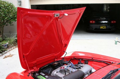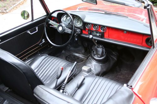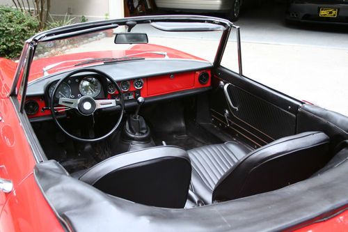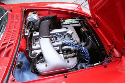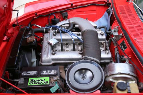 the engine and transmission was rebuilt couple years go in California .tires are good, the car drives well, the transmission shifts good in all gears.the top has a small tears on the let side .the color is Alfa red .with black seats..