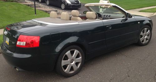 2003 2-door Audi A4 Convertible: 77,815 miles, unique dark green color with tan leather interior, BRAND NEW tan convertible top, power convertible top and windows, heated seats, small dent behind driver door, newly detailed, drives like new