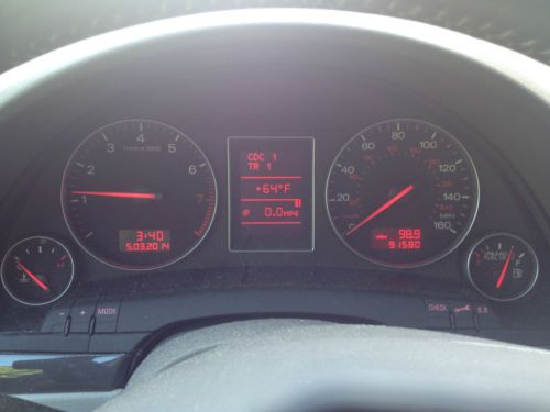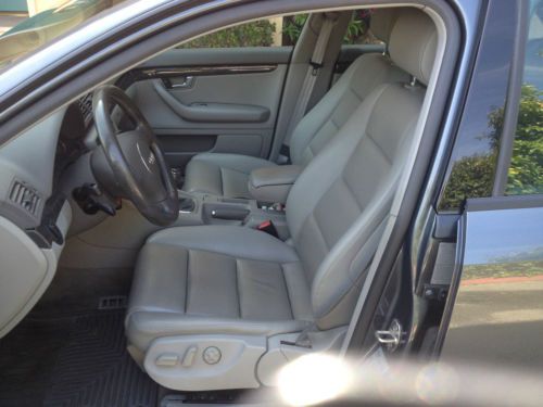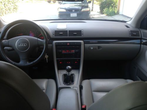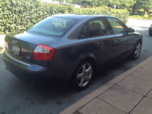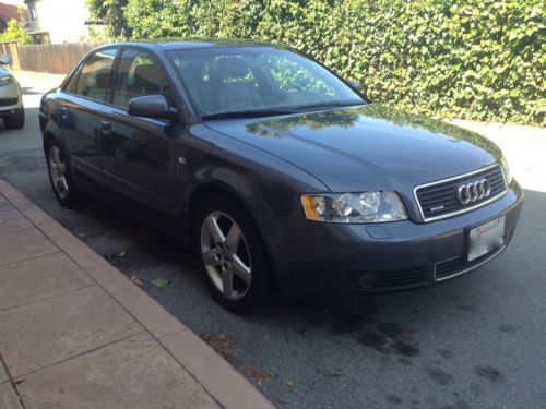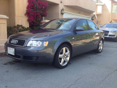 2003 Audi A4 Quattro 1.8T for sale. Approximately 91,800 miles (will change slightly as the car is still being used) with a 5-speed manual transmission. A 1-owner car in phenomenal condition inside and out. No accidents or repairs. Extremely well documented with all service and maintenance records from purchase date, including original Monroney window sticker. Serviced regularly by Audi dealerships and friends at 034 Motorsports in Fremont, CA, one of the most reputable and well known Audi shops in California. Owned by a true car/Audi enthusiast, Audi Club member, Audi Club instructor and current owner of 2 other Audis. Only selling to replace with an A6. No interior stains or rips, tears, or scuffs in the leather. No significant scratches or imperfections on the exterior. No scratches on the rear bumper. A few extremely minor dings that are newer and almost invisible (I had the prior existing ones removed by DentPro 2 years ago). Extremely meticulous about my cars and the car is washed, waxed, and clayed regularly, with leather cleaner and conditioner applied to all the seats. Rarely had anyone but a driver in the car, so back seats and footwells look new. OEM floormats removed for WeatherTech mats in the first week, so those are essentially new as well. Car until recently was garaged both at home and at work, so paint is in excellent condition. Timing belt already replaced and new tires purchased/installed just a few months ago. Registration recently renewed and good through April 2015. Never modified and has regularly passed CA smog. Two original keys/remotes + valet/emergency key and owners manuals included. Options per window sticker: