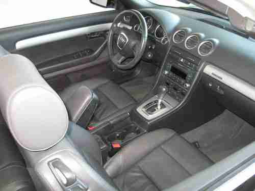 This 2007 Audi A4 comes with a 2.0L turbocharged four-cylinder (designated 2.0T FSI) making 200 horsepower. Our A4 sedan is an all-wheel drive "Quattro" version with a six-speed Tiptronic automatic. The Audi Cabriolet includes more attention to safety than most convertibles, with special side-sill reinforcements, stronger, impact-absorbing doors, specially designed side-impact air bags, and two pop-up rollover bars at the back of the cabin. The folding soft top also has more thermal and sound insulation for year-round driving, especially when equipped with quattro. The Quattro also has a different gauge appearance and leather upholstered sport seats, along with aluminum interior trim. As with all versions of quattro, torque is still sent to the wheels with the most traction as needed. All 2007 A4 models come with standard ESP stability control with anti-lock brakes and brake assist, and the Sideguard head air bag system, which offers full head protection even when the car rolls over after a primary collision. In the front seats, there are RearGuard head restraints aimed at preventing whiplash injuries.