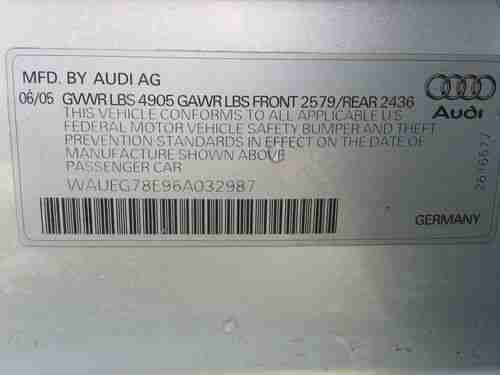 3.2 V6 S-line A4 with cold weather package, moonroof, AWD, power everything, full size spare, adaptive headlights, great sound system. Immaculate interior. All weather tires, recent oil and oil filter change, 3rd party maintenance manual included.
