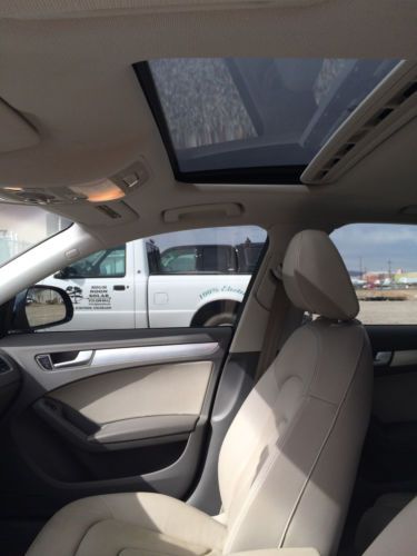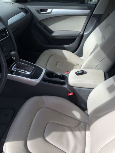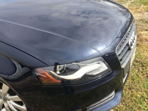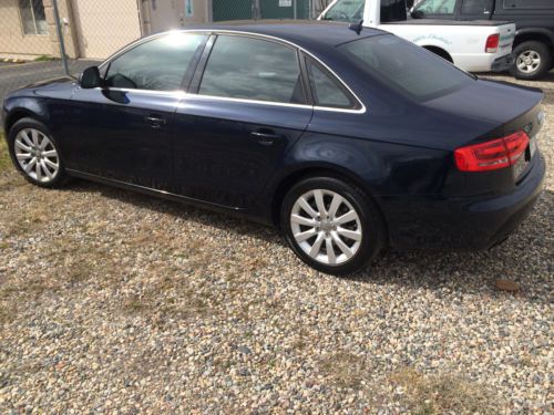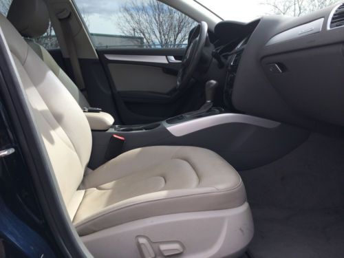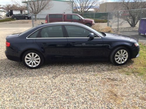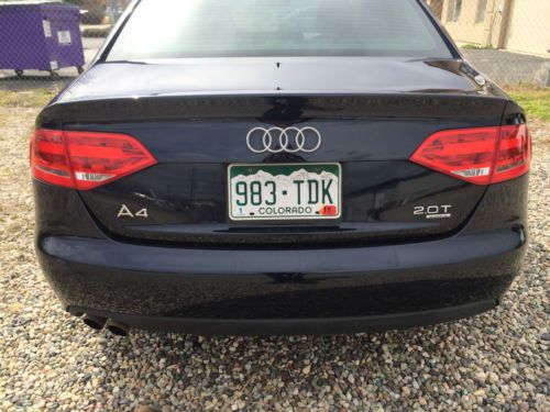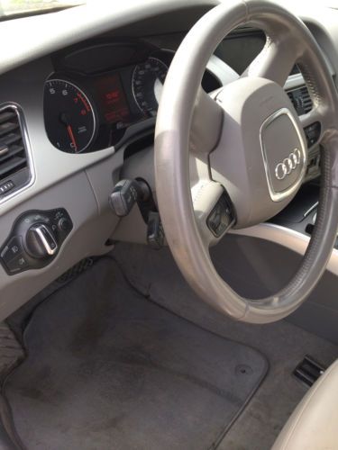 UP FOR SALE IS A 2009 AUDI A4 ALL WHEEL DRIVE WITH ONLY 52380 MILES ON IT. IT IS LIGHT GREY LEATHER INSIDE WITH METALLIC BLUE OUTSIDE. THIS CAR JUST RECEIVED NEW FRONT BRAKES, HAS GOOD TIRES AND HAS HAD ONLY ONE OWNER. CAR HAS THE CLASSIC DAY TIME RUNNING LIGHTS. OWNER HAD ONE DOG AND DID NOT SMOKE CIGARETTES IN THE CAR OR AT ALL. THIS CAR HAS BEEN GARGE KEPT FOR ITS LIFE AND HAS LOTS OF HIGHWAY MILES ON IT. ENGINE IS STRONG, TRANSMISSION IS GREAT, ONLY USED FULL SYNTHETIC MOTOR OIL AND HAS DONE A OIL CHANGE ON TIME, EVERY TIME. PLEASE SEE PICTURES, INSIDE IS MOSTLY CLEAN, FLOOR NEEDS A BETTER CLEANING AND NEW FLOOR MATS. THIS HAS BEEN A GREAT CAR AND WILL RUN FOR MANY MILES FOR SOMEONE ELSE. RUNS IN THE SNOW REALLY WELL WITH THE AWD. PLEASE ASK ANY QUESTIONS.