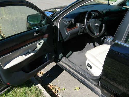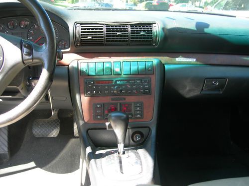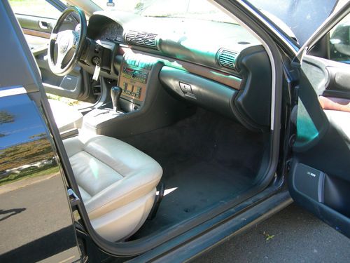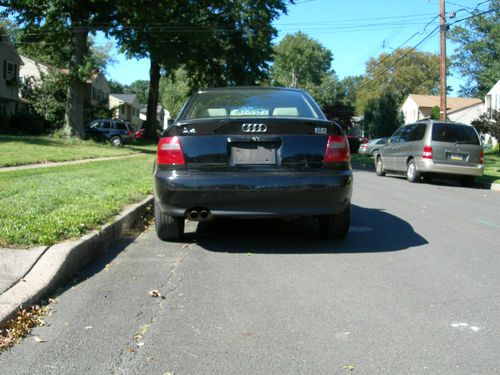 HERE IS A 1999 AUDI A4 QUATTRO THAT RUNS,LOOKS AND DRIVES PERFECT. THE EXTERIOR IS IN GREAT CONDITION WITH THE PAINT SHINNING GREAT. THE TIRES ARE ABOUT 80% AND THE BODY HAS NO RUST. THE INTERIOR IS ALSO IN GREAT SHAPE WITH NO CRACKING OR FUNNY ODORS. THE MILES ARE HIGH BUT IT WAS A HIGHWAY DRIVIN CAR THAT WAS 100% TAKEN CARE OF. THE 2.8 MOTOR IS QUIET AND VERY RESPONSIVE THE TRANSMISSION SHIFTS PERFECT.. ALL POWER OPTIONS FUNCTION AS THEY SHOULD WITH THE AC BEING ICE COLD. DONT BE AFRAID TO BID ON THIS VEH. IT WILL NOT LET YOU DOWN. ITS PERFECT FOR ANY TYPE OF WEATHER. IM SELLING WITH NO RESERVE SO HIGH BID WINS. ANY QUESTIONS CALL ME AT 267-475-4000.