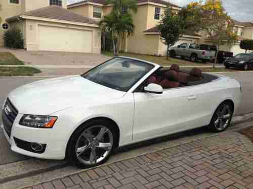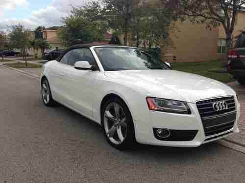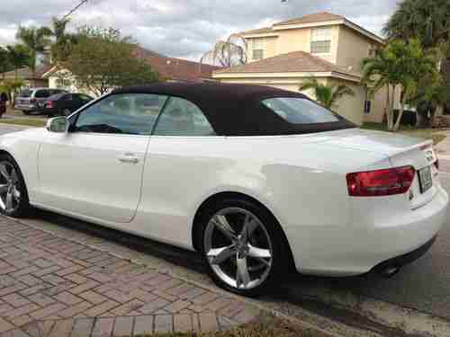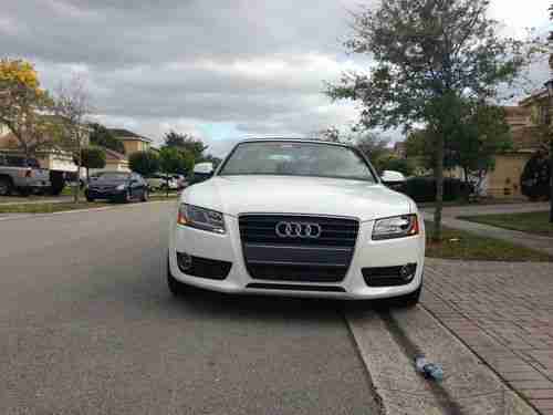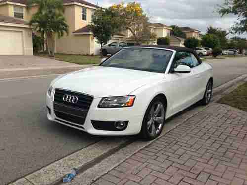 You are bidding on an almost brand new Audi A5 2012 Convertible Premium Plus edition. Vehicle was used at my vacation home only 3 months yearly. Its fully equiped with the comfort package also. it was only driven to malls and beaches around the miami area. this models costs about 58k with taxes and you can save about 10k on a car thats only been driving 5000 miles! Car also never had any issues and was only taken to dealership to install rear view camera option that was pre installed.