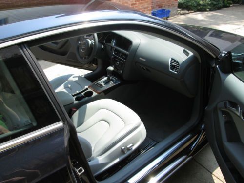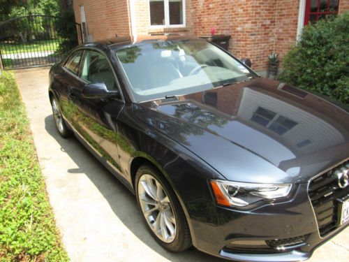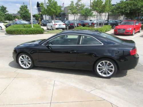 2014 Audi A5 Premium Coupe, Midnight Blue (dark navy) metallic/gray interior, up to 26 mpg around town average...wood interior, bluetooth, dual zone AC, All Wheel Drive, under factory warranty, 8 speed automatic, LED lighting package, CD, like new, one owner, smoke-free, for sale from (financing available) from Audi Dallas.