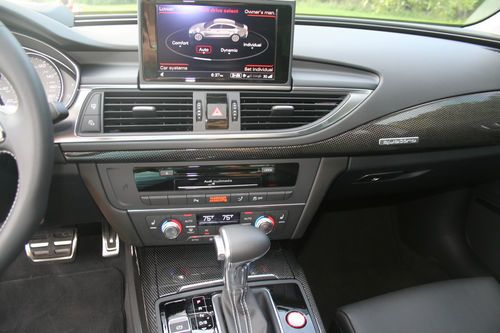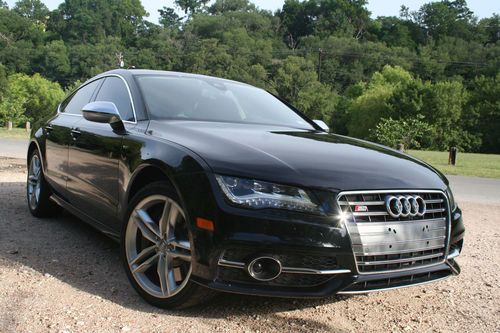 The 2013 Audi S7 is a performance car engineered to heighten every moment of the drive. Underneath the muscular and distinctive coupe-like exterior is a 420 hp TFSI® V8 engine, with S7 tuned Audi adaptive air suspension, and an optimized version of Audi quattro® all-wheel drive with sport differential. It all results in one thing, making you feel the excitement of the drive. Warranty - 4-Year/50,000 mile new vehicle limited warranty Maintenance - 12-Month/5,000 mile (whichever occurs first) NO CHARGE first scheduled maintenance Type - Electromechanical power steering system Ratio - 16.1:1 Turning circle (curb-to-curb) (ft) - 39.0 Material - Audi ultra® lightweight technology — aluminum exterior body panels and a steel frame Wheelbase (in) - 114.7 Length (in) - 195.6 Height (in) - 55.9 Overall width with mirrors (in) - 84.2 Track front (in) - 64.7 Track rear (in) - 64.4 Curb weight (lb) - 4,508 The S7 uses an engine based on the V-8 that was first seen in the 2012 A8. It's a very compact package, the turbos tucked in the engine's 90-degree vee with the exhaust ports in the heads' inside, the intakes on the outside. At 4.0 liters, the new direct-injected powerplant produces 420 bhp, with 406 lb-ft of torque on a plateau that stretches from 1400 to 5200 rpm. This compares to the 310 bhp and 325 lb-ft supercharged 3.0-liter V-6 in the A7. The 0-60 time comes in at 4.7 seconds, about a second quicker than the A7. Fuel economy is improved, and when you're cruising at light throttle, electronics shut down cylinders 2-3-5-8. To combat any untoward noise and vibration from the shutdown, Audi has included active noise control through the sound system and active engine mounts. Nail the throttle, take a quick breath while the turbos spool up and the S is on its way to 60 and beyond, which is officially set at 155 mph. Four-zone automatic climate control Three-spoke multifunction sport steering wheel with shift paddles Power tilt and telescopic adjustable steering column with memory Power windows with one-touch up/down operation and pinch protection Decorative interior inlays1 Sunroof Driver and front passenger dual-stage airbags, knee airbags, thorax side airbags and Sideguard® head curtain airbags2 Front passenger occupant detection—for airbags Power central locking system with safety unlock feature if airbags deploy Anti-lock Brake System (ABS) with Electronic Brake-pressure Distribution (EBD) and brake assist Electronic Stability Control (ESC) with traction control (ASR) Tire pressure monitoring system Safety belt reminder for driver and front passenger Lower Anchors and Tethers for CHildren (LATCH) in rear seats Electromechanical parking brake Audi MMI® Navigation plus with voice control system3 Audi MMI® touch with handwriting-recognition technology Audi connect® with six-month trial subscription4 BOSE® sound system with 14 speakers, AudioPilot® noise compensation and 630 watts Color driver information system HD Radio™ Technology SiriusXM Satellite Radio with 90-day trial subscription5 SiriusXM Traffic with four-year subscription5 Audi music interface with iPod® integration BLUETOOTH® wireless technology preparation for mobile phone Garage door opener (HomeLink®) Audi advanced key—keyless start, stop and entry6 Parking system plus with rear view camera Audi drive select Rain/light sensor for automatic windshield wipers and headlights Audi Singleframe® grille Adaptive xenon plus headlights with LED daytime running light technology Automatic headlights LED taillight technology and rear fog lights Power-adjustable, auto-dimming, heated exterior side mirrors with memory Quad exhaust outlets Power tailgate open/close Adaptive rear spoiler LED indicator light technology integrated into the exterior side mirrors Heated windshield washer nozzles Audi S exterior appearance (Platinum Gray Matte Audi Singleframe® grille, unique front/rear fascia and side sills, Aluminum-optic front/rear blade fins and exterior side mirror housings) The S7 comes equipped with intelligent technologies for the perfect drive. Audi MMI® touch gives you control of the cockpit at the swipe of a finger. Audi connect® with Google Earth™ 3D satellite imagery provides weather, news, and a Wi-Fi hotspot for passengers.* And Audi drive select helps personalize the drive. This is the ultimate technology for the ultimate drive. With muscular lines and diamond-stitched bolstered sport seating, the Audi S7 has the design cues to match its performance. That performance is matched with an obsessive elegance including a wraparound dash that envelops the cockpit, plus adjustable LED ambient lighting and natural fine grain wood inlays that add depth and style. This is a car that's been designed for high performance driving. Adaptive air suspension, electromechanical steering, electronic stability control, diamond stitch upholstery Night vision assistant with pedestrian detection Audi side assist and Audi active lane assist Corner view camera system Audi pre sense plus–includes Audi pre sense rear Camera and/or distance sensor (driver assistance system) Power–folding, power–adjustable, auto–dimming, heated side mirrors with memory Head-up display Audi adaptive cruise control with stop & go Innovation Package - $5,650 Adaptive cruise control; Audi pre sense plus collision warning systemfeatures: seat belt activation and brake assist Rear Side Airbags - $350 Rear side airbag Carbon Atlas Inlays - $500 Carbon fiber trim 20" 5-Parallel-Spoke-Star-Design Wheels with 255/35 Summer Tires - $1,000 Front and rear alloy wheels: 20" x 8.5"; Front and rear 255/35-20 and summer tires LED Headlights with LED DRLs - $1,400 Headlights: LED with complex surface lenses; LED headlightsFull Warranty! Bought new for over $92,000 < 3 months ago.