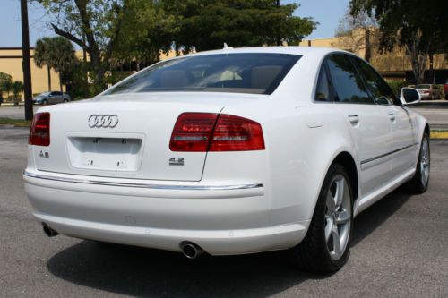 This is your chance to own what may be the lowest mileage 2009 A8 available on the market today. This car is as close to new vehicle condition as you will ever find. They is no paintwork or any hidden damages. The car has a clean Carfax and Autocheck. I have also just installed 4 brand new tires. I have all the books and 2 keys. You are welcome to have the vehicle inspected by anyone that is qualified to do so. We have nothing to hide. We are a family owned business for the last 26 years located in Pompano Beach, Florida. If you have any questions feel free to call or email anytime. Thanks Brad JOnes 954-684-5210