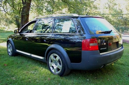 Here is a chance to get a really cool semi collectible Audi All-Road at a great price. This 2001 runs out well, has a 2.7 Liter twin turbo engine, auto trans, tilt wheel, cruise control, dual heated power seats in leather, power moonroof, windows, locks and mirrors, blk/grey leather with woodgrain trim, factory Navigation but you can not read it because the pixels in dash are bad, dual and side air bags, traction control, fog lights, just about everything works in this car. The stereo has Bose speakers and plays well..AM/FM stereo CD. 17" factory alloy wheels, tires are ok to drive on but should be replaced. The suspension does come down after a while but comes back up when you start the car. Clean car fax, no accidents, 33 service records. Selling as-is to the high bidder NO RESERVE Call with ay questions at 215-862-9555 price excludes tax, tags and doc fee of $197.50 Located in New Hope, Pa since 1985