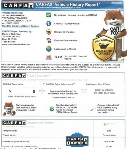 2012 Q5 Quattro Premium Leather Pano Roof Carfax Certified One Fl Owner Warrant on 2040-cars