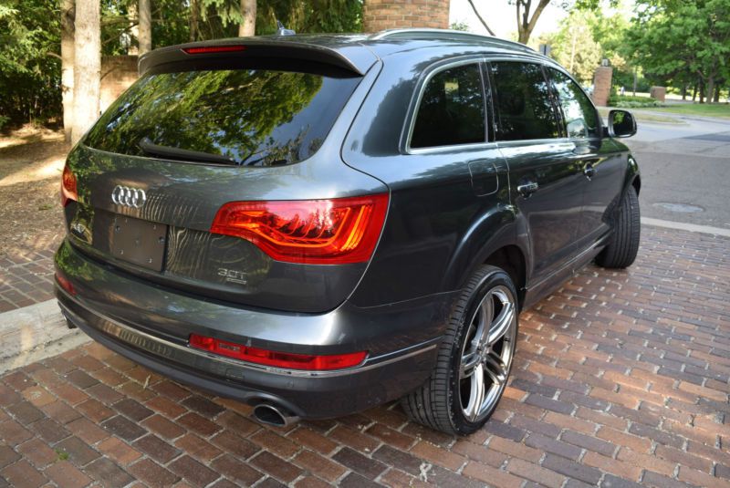 GRAPHITE GRAY METALLIC EXTERIOR ON THIS BEAUTIFUL 2014 AUDI Q7 PREMIUM PLUS EDITION matched with a BLACK(HEATED FRONT) leather interior. 3.0 V6 ENGINE((SUPERCHARGED ENGINE// LET ME REPEAT THIS SUPERCHARGED ENGINE. Superb condition. 7 speed automatic transmission with an option for a manual mode. AMAZING AND I MEAN AMAZING POWER OPERATED DUAL PANORAMIC POWER ROOF, EVEN THE THIRD ROW SEAT HAS A PANORAMIC ROOF. 3 ROW SEATING. LEATHER WRAPPED STEERING WHEEL. DUAL ZONE FRONT CLIMATE CONTROL. Am/fm/CD. DUAL power HEATED FRONT seats in tip top shape. THIRD ROW FOLD FLAT SEATS. DRIVER FRONT MEMORY SEAT. 6 CD CHANGER. Rear view camera. BLIS SYSTEM (BLIND SPOT ALERT) . Front and rear parking sensors. NAVIGATION system with pinpoint map accuracy directions for go anywhere driving. Gorgeous full sky view PANORAMA ROOF. PUSH BUTTON START ON/OFF. Power windows. Power HEATED-memory mirrors. Key less Entry. POWER FOLDING /HEATED MIRRORS. BLIS SYSTEM/BLIND SPOT ALERT SYSTEM. Leather wrapped steering wheel. REAR-VIEW-CAMERA. HEATED STEERING WHEEL. Steering wheel controls. Premium XENON headlights which go for a premium. ADAPTIVE HEADLIGHTS. LED LIGHTS. POWER REAR LIFT GATE. Premium audio system. DUAL STAINLESS STEEL exhaust. GORGEOUS (NEW) 22" AUDI ALLOY wheels with (NEW) 22" tires to match. BLUETOOTH. ROOF RACK. Cruise control. Stability control. Steering wheel controls. OWNERS MANUAL. This vehicle is in superb condition and looks GREAT. In awesome awesome shape. Absolute gorgeous color combo. PREMIUM EDITION-LINE PACKAGE.
