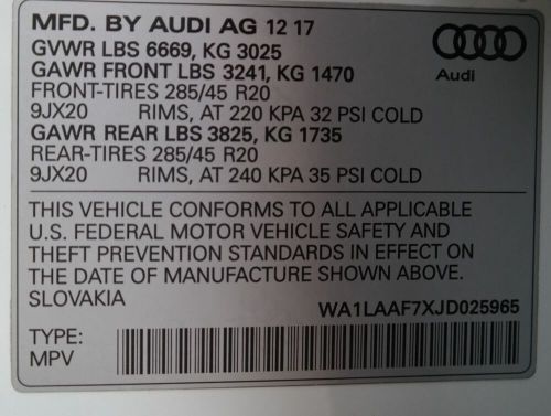 VIN (Vehicle Identification Number): WA1LAAF7XJD025965