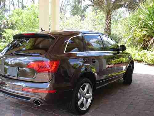 THIS IS AN AWESOME LOOKING AND PERFORMING 2013 AUDI Q7 AWD PRESTIGE SPORT SUPERCHARGED. BEAUTIFUL DARK BROWN METALLIC OVER CREME LEATHER INTERIOR. ALWAYS GARAGED AND PAMPERED WITH ONLY 10000 MILES FROM NEW. STILL UNDER FULL FACTORY WARRANTY. CARFAX CERTIFIED, LOOK AT DETAILED PICTURES. LOADED WITH NAVIGATION, BACK-UP CAMERA, HEATED AND AC FRONT SEATS, PANORAMA ROOF, KEYLESS GO AND MUCH MORE. FEEL FREE TO CALL DAVE AT 239-250-2000 WITH QUESTIONS. WILL PICK UP WINNER FROM FT. MYERS AIRPORT OR HELP TO SHIP THE AUDI TO YOUR HOME.