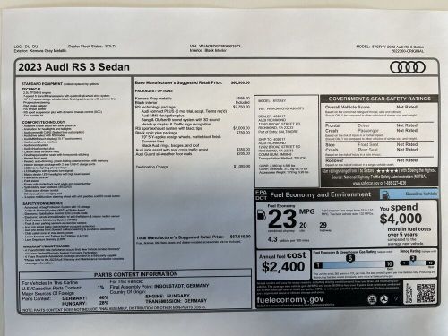 2018 audi rs 3 sedan 2.5 tfsi quattro s tronic(C $56,000.00)