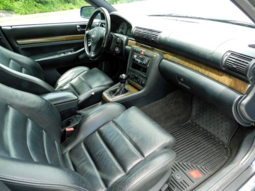 2000 Audi B5 S4 for sale, 2.7T Bi-turbo, 6-speed manual and very quick. Exact mileage unknown, but close to 175K. I've owned the car since October of 2010 and know the two previous owners. The instrument panel was replaced by the previous owner in May 2010 due to technical issues, so the mileage on the cluster reads differently than the actual mileage. The cluster reads 130k+. Santorin Blue, stock rims, factory Bose sound system and Winter Package that includes front heated seats, ski bag, and all weather floor mats.