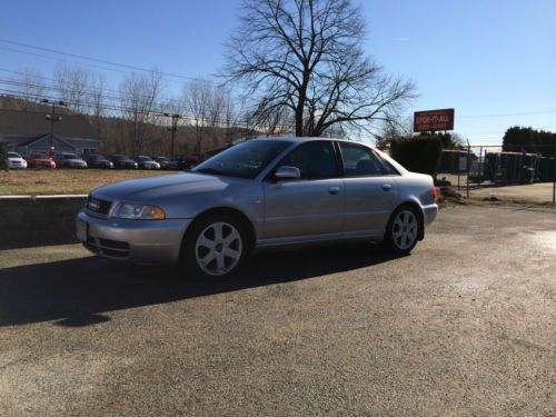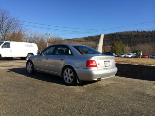 2000 AUDI S4 Quattro 4D Sedan 6 Cyl. 2.7 L-T with Manual 6 Speed Transmission Silver Exterior, Graphite Interior with Wood Grain Trim; Power Windows, Locks & Sliding Sunroof; Heated Seats; Multi Disc CD / Tape Player; Under 80K Miles; Excellent condition; One owner. $8,000 OBO |