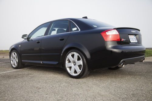 Wolf in sheep's clothing sedan. 4.2L V8. 6-sp Manual. Brilliant Black. Black / Silver Interior. Performance Modifications (All done by Griffin Motorwerke in Berkley, CA): Full Milltek Exhaust (high-flow down pipes, cat-back resonated), Revo Stage 2 Software, Stoptech Front and Rear Brake Kit, Bilstein Shocks (front and rear) and Control Arms (maintained stock ride height and feel). This car is very fast. While it looks like a stock S4, it produces an estimated 380bhp and 340lb-ft of torque, remains tight as a drum, and it sounds better than a stock RS4 and RS6. Enhanced Interior Package: Recaro Seats with Alcantara Suede Inserts, Bright Aluminum Belt Line Trim. Premium Package: Glass Sunroof (w/power, tilt, slide), Homelink Remote, Auto-Dimming Interior Mirror w/Compass, Auto-Dimming Exterior Mirrors, Memory for Driver Seat and Mirror, Light Sensor Package. Premium Audio Package: Bose Premium Sound, in-dash, 6-disc CD changer, XM Satellite Radio. Heated Front Seats. California / Northeast Emissions. Comfort Multifunction Steering Wheel. Full-size Spare with Matching OEM 18" Alloy Wheel. Very Good Condition: Some wear on the driver seat suede, minor rash on front wheels, minor nicks in rear and front bumpers, always garaged. 2 Owners (I purchased at 4,700 Miles as an Audi Certified Pre-owned Car): All service records, clean title in hand. Very hard to say goodbye to this car. |