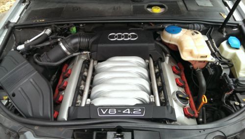 6-speed V8 manual silver sedan, Bose Audi Symphony audio system, sunroof, garage-stored, near-showroom condition, no internal wear, new Audi-installed clutch and flywheel worth $3600, new Bosch battery and air con filter, sunroof, leather heated Recaro seats, 3-year or 38,000 miles mechanical warranty, clean title, 62k miles