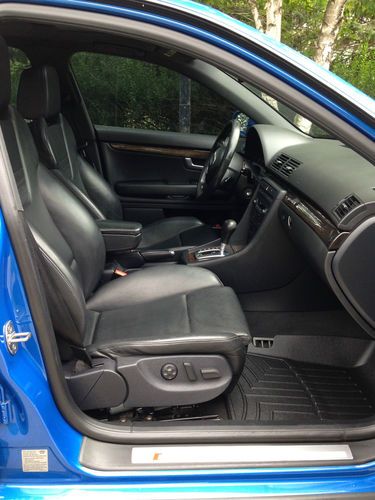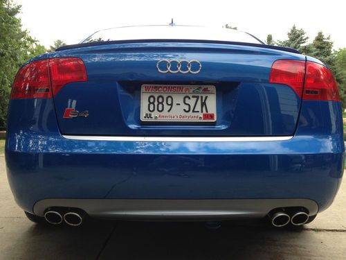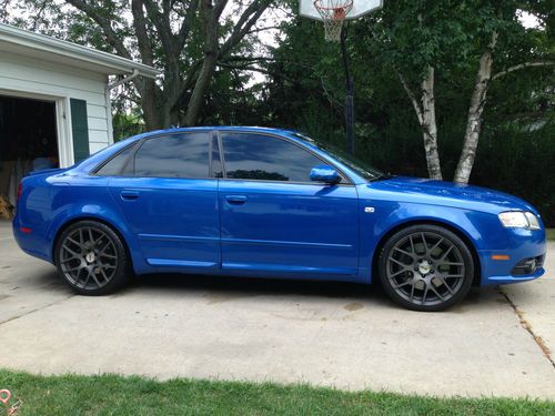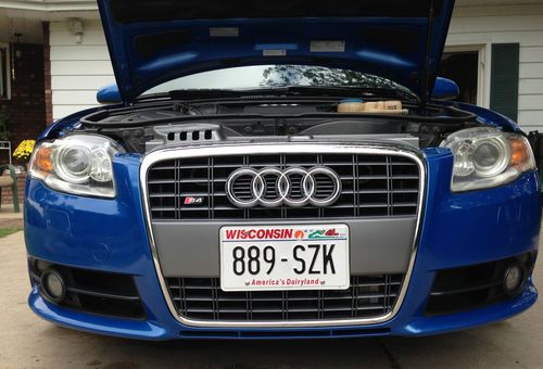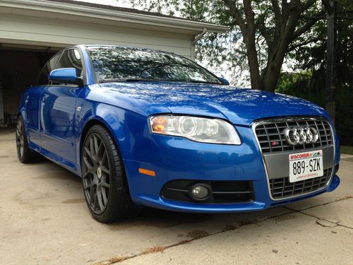 For sale is my 2005.5 Audi Sprint Blue B7 S4 that I have owned for 2 years. The car currently has 96,022 miles on it, but may fluctuate since I will be driving it until sold. This Audi is in excellent condition inside and out. There is no major scratches, dents, dings, or paint flaws. The black ebony interior is in excellent shape as well, however the drivers seat does show some minor wear on the leather that's not uncommon. This vehicle has had a manufactures warranty on all the way until 5/1/2012 or until it hit 85,000 miles. I have every receipt for maintenance since the vehicle was new. I'm only selling the car because I want to purchase the big brother Audi RS4. This vehicle is completely stock besides ECS tuning LED license plate lights and interior lights, weather-tech all season floor mats, Schwaben carpeted floor mats, and matte gray TSW forged rims wrapped with Dunlop SP SPORT01 Run Flat 245/35/19 tires (2400$ package new). Tires fit perfect on the car, have a lot of tread left, and handle great. I also have gray/polished Velocity RS4 rims that came with the car if you want those instead. As of now the current price reflects the TSW rims on the car. Synthetic oil change every 5K miles, vehicle was hand waxed/washed with ZANIO polish only. Local European mechanic shop in town will verify the condition of the vehicle. You will not be disappointed, this vehicle needs nothing when you purchase it. Come take a look. Fell free to call me with any questions at 920-579-5899.