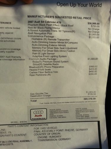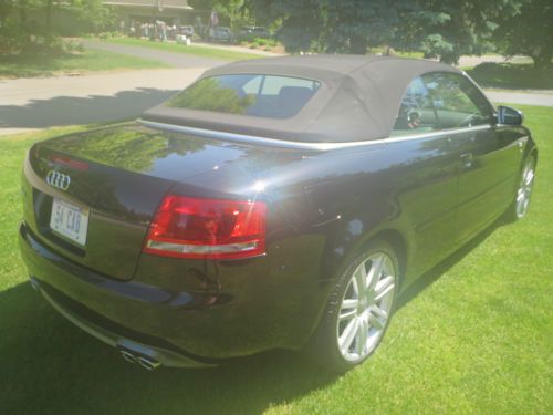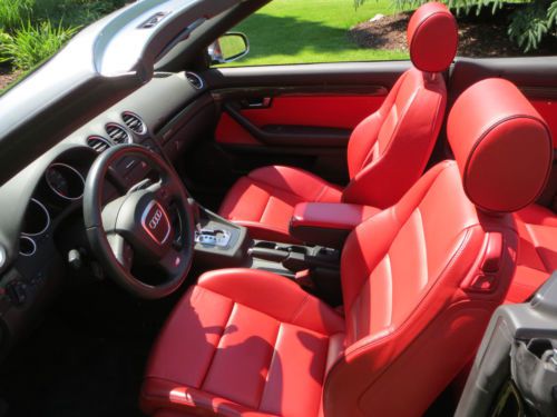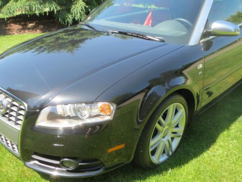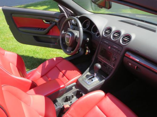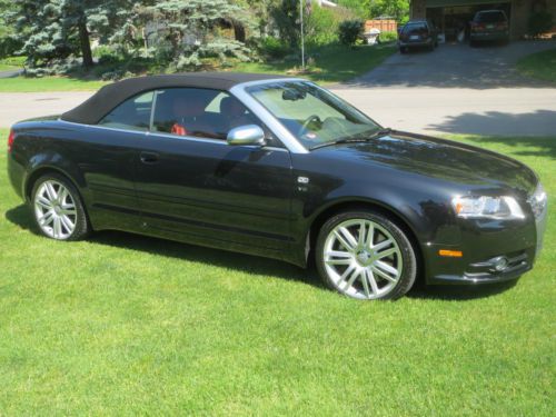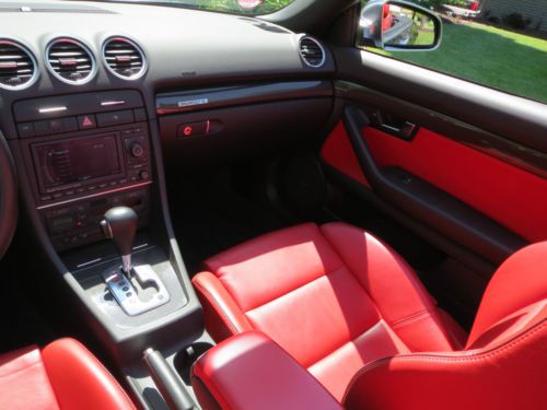 2007 Audi S4 Cabriolet ** S T U N N I N G EUROPEAN 8-cy Convertible - - BEST COLOR COMBINATION EVER MADE ** Original Sticker: $65,370 Unheard of Autocheck Score of 94% Audi of America verified 1 of 1 production - AoA Reference #130075098 Feb. 15, 2013 QUATTRO V8 - - - 333bhp Automatic with Sport Paddle Shifters Custom order PHANTOM BLACK PEARL EFFECT ($750) CRIMSON RED leather with black piping Carbon Fiber Trim ($450) Navigation Plus ($1,950) Convenience Package ($1,050) Premium Audio Bose/Sirius ($1,000) Bluetooth ($500) Heated Seats ($450) Rear Parktronic ($350) Invisi-bra ($600) This car is a future collectible. Likely the single nicest, lowest mile S4 Cabriolet in existence on planet earth. Non-smoker, garage stored, only ever driven in the summer. No Accidents, No Flood, No Stories Great condition with minor interior and exterior wear commensurate with ultra-low mileage I currently drive this car on sunny days so the mileage may increase The Audi S4 Cabriolet is the only "ALL-IN-ONE" solution for 4-SEAT, AWD, V8, Convertible fun Al books, manuals, original brochure, original window sticker and 2-key FOBS All new S4's & S5's have been demoted to 6-cylinder engines Adult driven and always respected |
