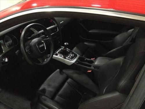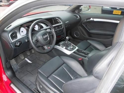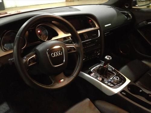 This is an AMAZING 2009 Audi S5, 31k miles. Rare 6 speed manual transmission, great color combination. 4.2L V-8 with 354 hp and 325 lb-ft. 0-60 in under 5 seconds Still under factory warranty, equipped with - - Quattro All Wheel Drive- Navigation Package with Voice Control Navigational systems : information type: full map and voice and knobs/touch buttons controls DVD; Connection to ext. entertainment devices ipod and includes input USB connection; Voice activating system includes radio settings, includes phone and includes navigation system; Multi-function display screen- Technology Package Parking distance sensors rear and radar & camera; Headlight control active; Cornering lights/curb illumination; Smart card / smart key automatic, includes central locking, includes ignition starter, includes memory seat adjustments and includes radio settings; Engine start button; Card key power locks; Overtaking sensor; Collision warning system driver monitor- Audi Music Interface -Connection to ext. entertainment devices ipod and includes input USB connection- Bang & Olufsen Premium Sound System Bang & Olufsen audio system; Fourteen upgraded speaker(s) Bang & Olufsen; Amplifier; Surround sound reproduction; Dynamic noise reduction ALSO -* Leather, heated and power driver and passenger seats* Tri-climate control* HID headlights paired with LED daytime running lights. Clean title, clean car fax, non-smoker.