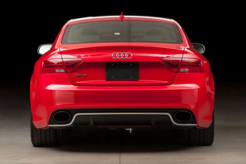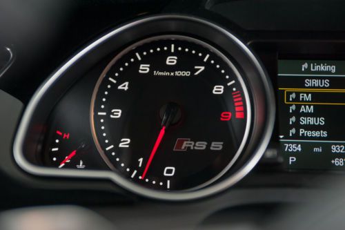 VIN: WUAC6AFR8DA901420 Misano Red Pearl Effect Exterior with Black Fine Nappa Leather (with Rock Gray Piping); Only 7400 Miles; One Owner; Factory Warranty, 450 hp V8 (8500 rpm); Quattro All-wheel Drive; 7-speed Dual-clutch Paddle-shift Gearbox; All Records from New; Tons of Options/Features: Navigation Plus Package, Factory Sport Exhaust, 20-inch Wheels, Matte Aluminum-Optic Package, Rear Sunshade, “RS” Carbon Fiber Interior Trim; Nearly $80,000 New; Flawless CarFax and Condition; Always Garaged; No Accidents/Paint History. This 2013 Audi RS 5 was ordered to spec and delivered new on December 11, 2012 at Delta Imports, the Audi dealer in Grand Rapids, Michigan. The original MSRP was $76,920. It has been under the care of Fox Motorsports from new. All the service work has been done, despite the ultra-low miles (next service not due until November 2014). This RS 5 is in flawless, as-new condition inside and out. It has never been abused and has never been on a racetrack. It has always been stored in a climate-controlled environment when not in use. The original Pirelli P Zero tires are in excellent condition. Included are all original keys, books, records, window sticker, etc. Also included is a 2nd set of alloy wheels/tires (19-inch wheels with Michelin Alpin PA4 winter tires. Barely used, as the owner wintered in Florida). The RS 5 has full Audi factory warranty until December of 2016 or 50,000 miles. Full Spec/Options List: Exterior: Misano Red Pearl Effect (N9N9) Interior: Black Fine Nappa Leather with Rock Gray Piping (UB) Trim: Carbon Fiber Inlays (RS Design) Options: Audi MMI Navigation Plus Package (PNY) -CD/DVD player with HD radio -MMI navigation plus with voice control -Bang & Olufsen sound system -Audi parking system plus with rearview camera -Audi connect with online services -Bluetooth streaming audio Sport Exhaust System with Black Finishers (0P6) 20-inch 5-arm Rotor Wheels with Summer Tires (PQW) Matte Aluminum-optic Package (VJ7) Power Rear Window Sunshade (3Y2) Front Filler Panel (6W9) Fox