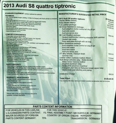 2013 audi s8 v8 twin turbo quattro msrp $114k+ only 5800 miles hard loaded wow(US $102,800.00)