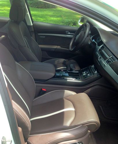 Beautifully maintained 2013 Audi S8 used to drive highway miles back and forth on business trips between clients, and kept in garage when not in use. This vehicle has been meticulously maintained with a daily wash and weekly detail. The car has a Certified Clean Carfax and no accident history. The exterior is a beautiful white Ibis color and the interior is the Baloa Brown with sport stitching detail. This car has never been smoked in and the interior is still spotless just like the day it was picked up. It has had all required maintenance, and includes 2 Audi Advanced keys. It also includes an after market laser detector scrambler worth $3,000. This vehicle was originally purchased in January 2013 in Houston, TX and driven in South Alabama for the remainder of the time since owning it. We no longer need this vehicle as we have relocated our office and use strictly electric vehicles now. Our loss is your gain on this perfect condition vehicle. We will be happy to arrange for flights if you choose to come pick up the vehicle or to arrange for shipping to your front door. Take advantage of this great deal on an absolutely wonderful car to own.