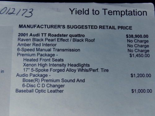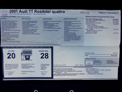 Florida 01 Tt Quattro Roadster Awd Baseball Optic Leather Premium Pkg No Reserve on 2040-cars