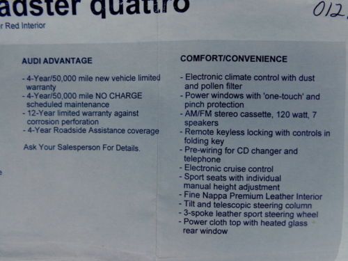 02 tt roadster convertible baseball leather audio pkg sport wheels xenon fl(US $10,500.00)