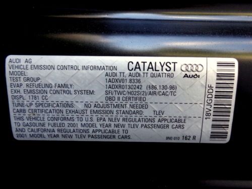 2001 audi tt quattro base coupe 2-door 1.8l(US $4,500.00)