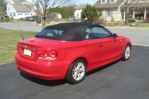 2009 Red BMW 128i Convertible Just in time for summer. Clean - Original Owner - Garage Kept. - Non Smoker Air Conditioning - Power Windows - Power Seats - Power Door Locks Cruse Control - Rain Sensing Windshield Wipers Heated Seats - Automatic Transmission iPod Adapter (lets you play all the songs on your iPod thru the radio & display the songs on the radio) If You have any questions or would like to see the car, please call Barry at 610-438-4455 Private seller (Original Owner) $1000 Deposit due within 2 days from the end of the auction via Pay Pal. Balance due on Pick Up within 1 week from end of the auction. Please contact me for other payment arrangements. Thank You for Looking & Good Luck Bidding. Seller Reserves the right to end this auction early. (IF YOU ARE INTERESTED IN THIS CAR, PLEASE PLACE YOUR BID NOW. IT MAY NOT LAST)