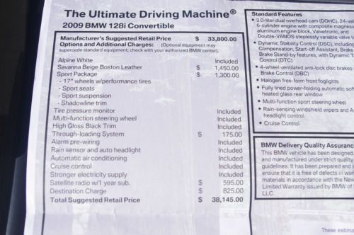 This 2009 BMW 128i Convertible with the sport package is priced to sell! This car is in great condition and has less than 30,000 miles on it! With the 6 speed manual transmission, power roof, alpine white exterior, and beige leather interior, this car is a joy to drive!