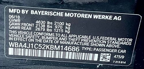 VIN (Vehicle Identification Number): WBA4J1C52KBM14686