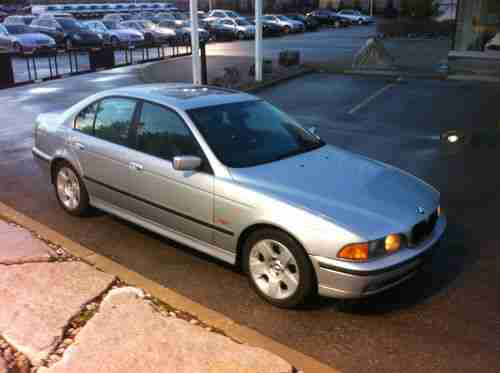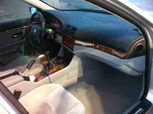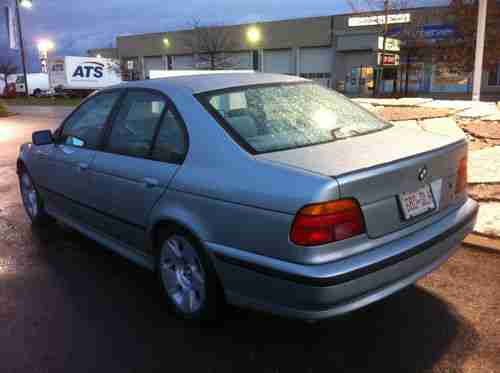 In on trade at VSR Automobiles Inc. in Toronto is this very nice and clean 540i with a 6 speed box. This is a very fun and fast car to drive. Don't let the high kilometers fool you. This BMW has ben very well maintainned and has a strong motor, transmission and clutch. I have been happily using this BMW as my driver for months and only now have I put it up for sale. This is a fun, and cheap toy for BMW fanatics like myself. I have only done a couple of small mods like an M-spoiler and also new, blacked-out kidney grills. It has approx 309,800 kilometers and I have put on a few thousand with no issues. The silver exterior is very clean and rust free with just a few scratches here and there common of a car this old with these KM. It appears a couple of panels have been painted such as the front passenger fender. This car comes with a clean accident report from carproof. It also comes with the books and extra keys. Overall it is very nice. The interior is equally as nice. It does have one thing that i've never seen on any of the many 540's ive bought and that is cloth interior!!! It acually is very nice and great in the winter! There is some ripping on a couple of the seats but it is very, very nice overall. Everything including all power options, AC, heat and windows work. The only item I found not working is one of the passenger seat power settings. The car is fitted with 17" wheels with very good Michelin winter tires. No other sets to come with the car. The check engine light is also on. But again, I have been driving this car, had it checked for safety and it won't need much for an ontario safety. Lot's of clutch left and the motor is strong.