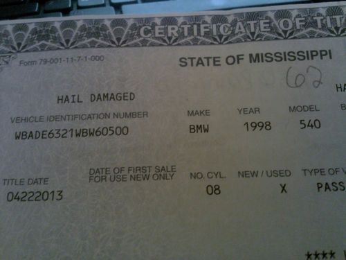This is a great running BMW Air and heat blow good and radio sounds great. Has a Hail Damaged title.This car is located in Meridian MS.
