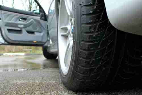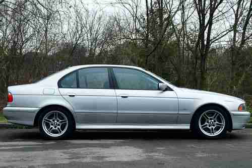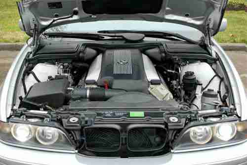 Silver 5-series bimmer with 4.8l v8, sunroof, newer tires, and heated leather