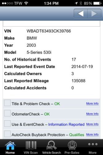 2003 BMW 530i in excellent condition,best color possible,original miles,woman driven,everything works properly,ice cool A/C,,no oil burn or leak,tires are good,Clean carfax.I'm selling it AS IS ,please come over and check the car on the spot,I won't take any complains after the auction be over.
