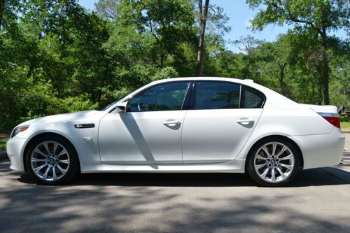 Up for sale is a stunning 2006 BMW M5 with only 14,950 miles. This vehicle is in incredible condition and very well cared for. The exterior is a rare Alpine White faultlessly matched to a luxurious Sepang Bronze leather interior. This is a one owner, dealer maintained Texas vehicle that served as a weekend car (hence the low mileage) and has never been in the rain or snow. It is ding and dent free and has had no paint work. Have all books, maintenance records, and keys.