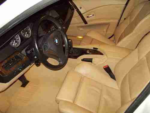 This 2006 BMW 550i Sport comes in a beautiful White exterior over a Beige Leather interior to create this great color combination. This 5-Series comes loaded with options including the Sport Package with Multi-Contour Seats, 18" Star Spoke Alloy Wheels, Navigation, Logic7 Premium Sound System, Satellite Radio, Bluetooth, Cold Weather Package with Heated Seats, Heated Steering Wheel, Dynamic HID Headlights, and Front/Rear Parking Sensors. With all of these great features, this 550i Sport makes for an excellent everyday driver with abundant amenities and plenty of power from it's 4.8L V8 Engine. Also comes with Full Books, Full Set of Keys, Carpets, and Original Window Sticker. When it comes to the condition of this 5-Series, it can clearly be seen that it has always been well maintained and cared for since the day it was purchased new. The exterior is in excellent condition, clearly garage kept, showing no noticeable blemishes from dents/dings and fresh tires on all four wheels. The NON-SMOKER interior is just as great, with next to zero visible seat wear, and no stains or odors to be found. Both inside and out, this 550i is sure to satisfy any discerning buyer searching for that quality used BMW. CARFAX CERTIFIED!! Pre-buy inspections welcome.