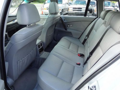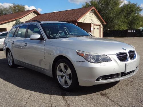 Super clean and heavily optioned One Owner 530xi AWD Wagon finished in Titanium Silver over Gray Leather interior. This is a locally owned One Owner new car trade in and is in excellent condition inside and out with no dings, dents, or major scratches to be found on the body anywhere. The interior is impeccably clean as well with no signs of abnormal wear or abuse. The car runs and drives great with no known problems or issues and is loaded with factory options including: 6-SPEED STEPTRONIC AUTOMATIC TRANSMISSION W/OD; FRONT BUCKET SEATS-inc: 10-way pwr front seats w/pwr head restraints, power lumbar; PREMIUM PKG-inc: auto tailgate operation, universal garage door opener, auto-dimming interior & exterior rearview mirrors, Dakota leather seat & door trim, luxury wood trim, ambient light pkg; COLD WEATHER PKG-inc: heated front seats, headlight cleaning system, heated steering wheel, ski bag; PREMIUM SOUND PKG-inc: 6-disc CD changer in glove compartment, premium Logic 7 sound system; FRONT/REAR PARK DISTANCE CONTROL-inc: graphic display; NAVIGATION SYSTEM-inc: voice activation; and SIRIUS SATELLITE RADIO in addition to the long list of standard equipment like Panorama power moonroof, Xenon HID adaptive headlights, Bluetooth connectivity, BMW assist, Memory seat and steering column, Pet containment net and parcel cover, and more. Truly a super clean, well cared for, fully equipped 5-series wagon with Navigation. Please visit us at our website, www.autolivery.com, for a COMPLETE description of this vehicle, including more pictures, vehicle and warranty info. A link to our website can be found in the "About the Dealer" section found in this ad.