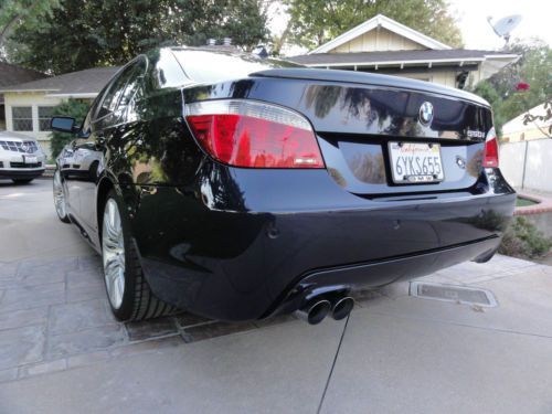2007 BMW 550i sedan, M Sport low mile, under 50K miles, 6 speed Manual transmission. The 6 Speed transmission is smooth and fun to drive. I love driving this car but I have one too many toys and need to part with it to make peace with my wife. That was less than 5 thousand miles ago in December, 2012. It did not stop there. Next it got a DINAN Cold Air System along with a Stage 2 DINAN Flash Computer by Bavarian Workshop, a DINAN certified installer. A carbon fiber trunk spoiler was also installed. All the DINAN additions are California smog compliant. For further info and viewing please feel free to contact me. Please note that I am a private party seller and there are no impied or none implied warranties. I have the foctory air filter and box, along with the factory exhaust that will go with the car at the selling price.
